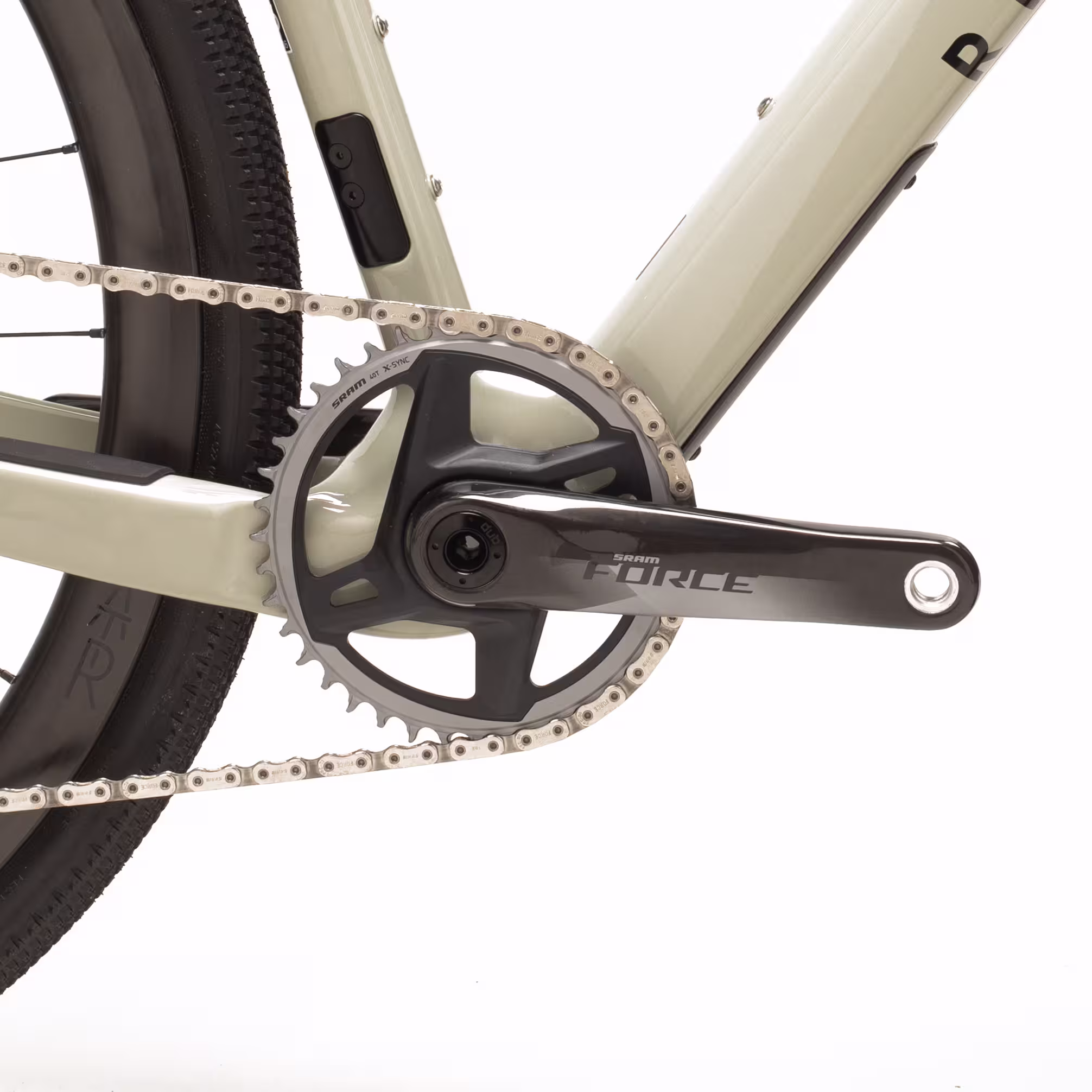 Esta bicicleta está equipada con el grupo SRAM Force XPLR AXS de 12 velocidades, un sistema electrónico inalámbrico que ofrece cambios rápidos y precisos. Con un plato de 40T y un cassette 10-44T, proporciona un rango de desarrollo suficiente para afrontar subidas pronunciadas y mantener velocidad en los descensos. El sistema AXS también incluye frenos de disco hidráulicos de 160 mm, que proporcionan una frenada progresiva y potente en cualquier condición.