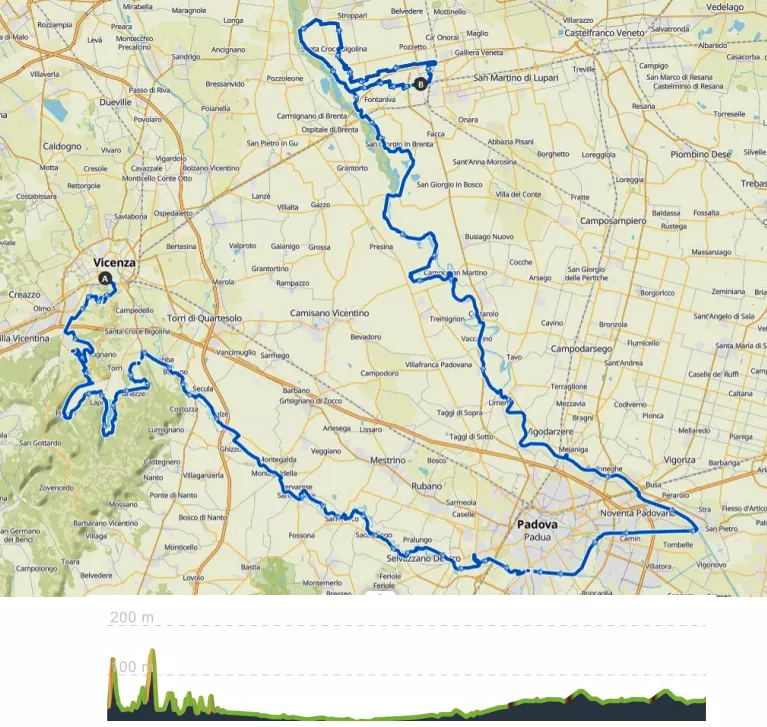 El evento contará con tres recorridos: 140 km, 166 km y 194 km. Todas las carreras comienzan en Vicenza, recorren el río Bacchiglione y terminan en la ciudad medieval amurallada de Cittadella.